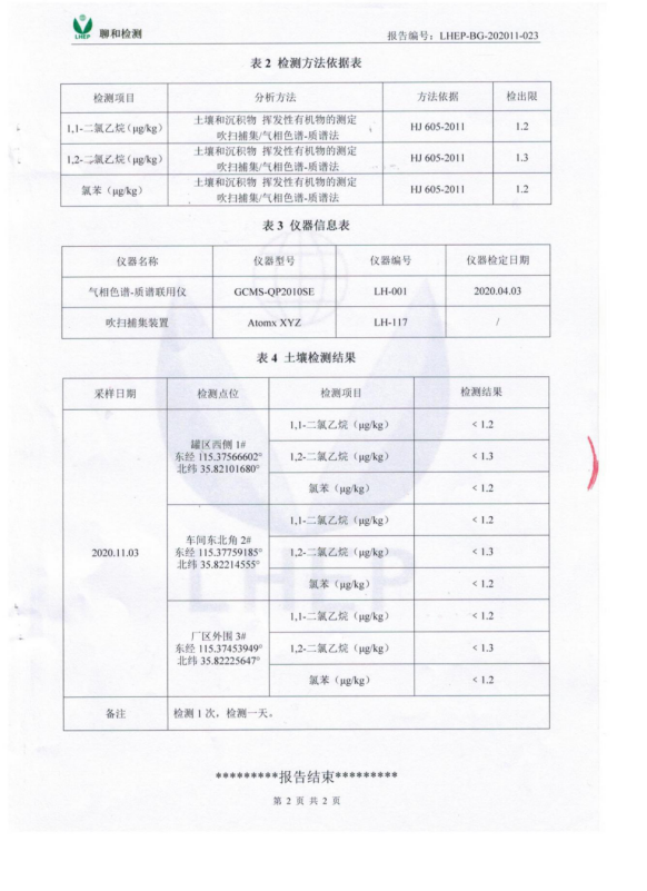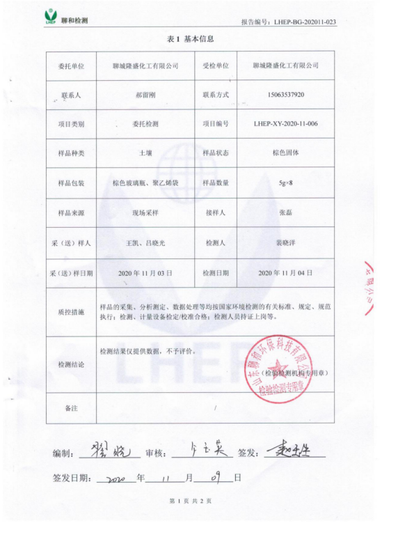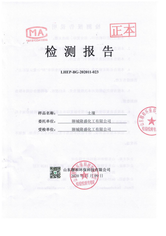 聊城隆盛化工有限公司2020年土壤檢測(cè)數(shù)據(jù)公示