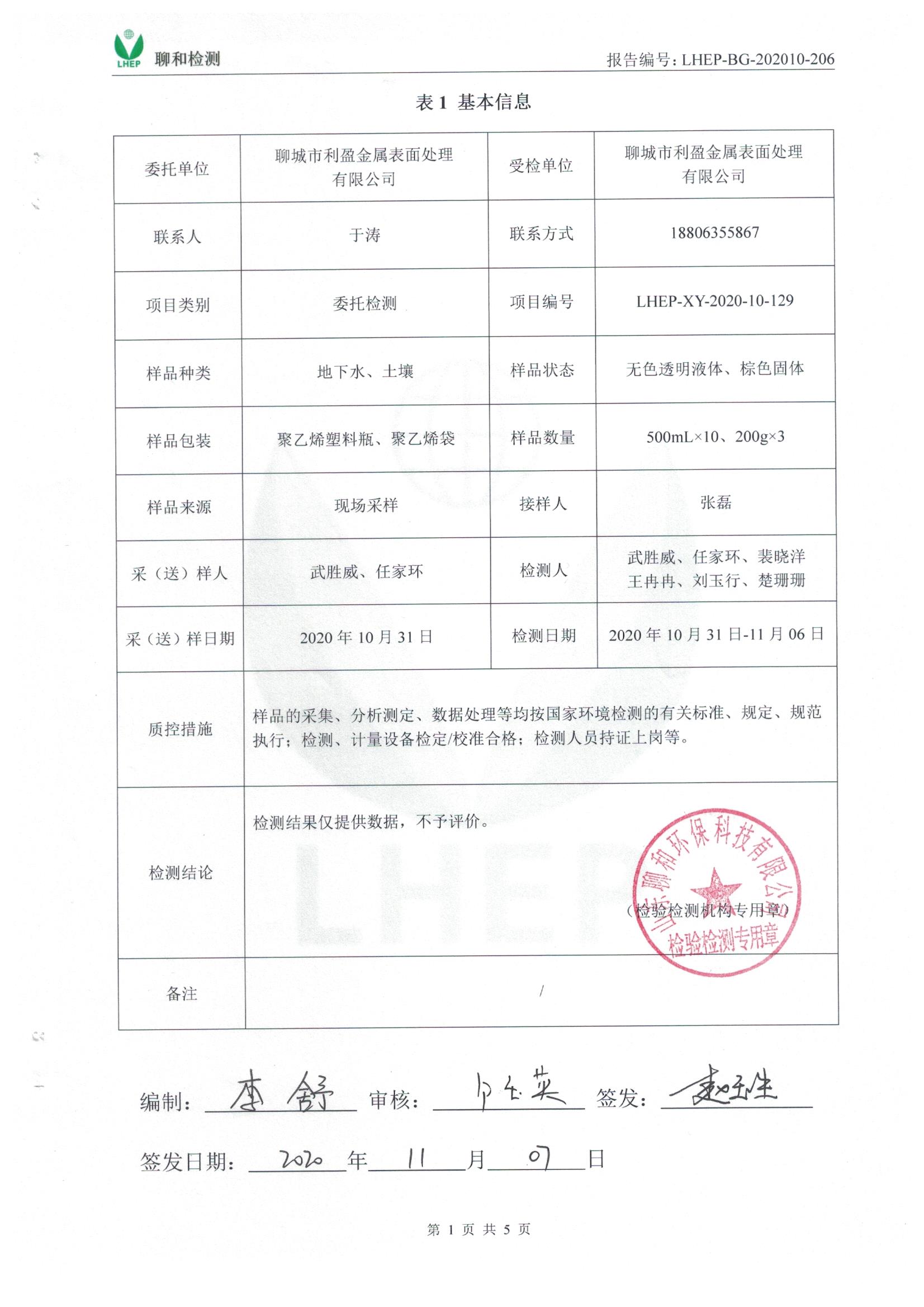 聊城市利盈金屬表面處理有限公司例行檢測報告20201107