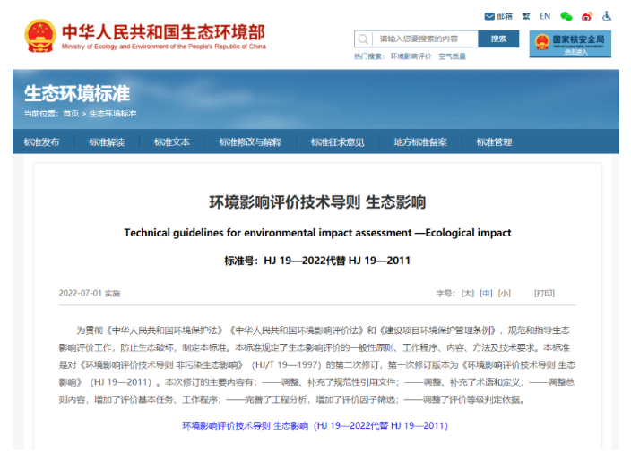 本標準是對《環境影響評價技術導則 非污染生態影響》(HJ/T 19—1997)的第二次修訂,第一次修訂版本為《環境影響評價技術導則 生態影響》(HJ 19—2011)。本次修訂的主要內容有: