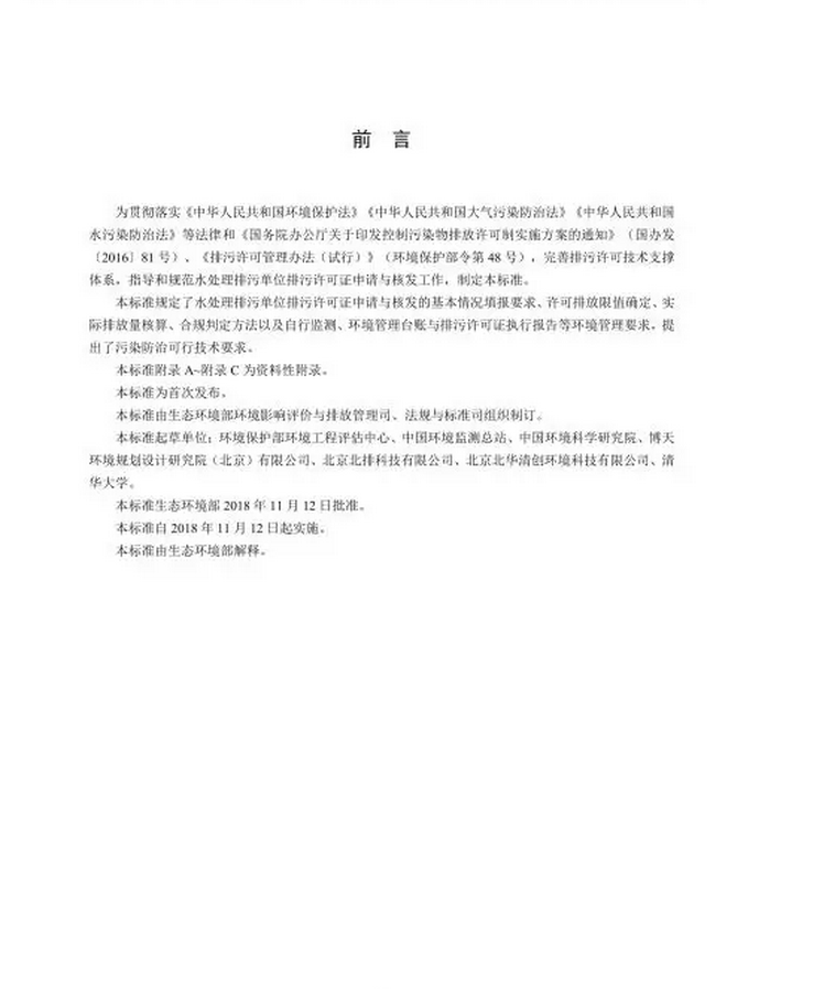 為貫徹落實(shí)《中華人民共和國(guó)環(huán)境保護(hù)法》《中華人民共和國(guó)大氣污染防治法》《中華人民共和國(guó)水污染防治法》等法律法規(guī)、《國(guó)務(wù)院辦公廳關(guān)于印發(fā)控制污染物排放許可制實(shí)施方案的通知》(國(guó)辦發(fā)〔2016〕81號(hào))和《排污許可管理辦法(試行)》(環(huán)境保護(hù)部令第48號(hào)),完善排污許可技術(shù)支撐體系,指導(dǎo)和規(guī)范污水處理廠排污許可證申請(qǐng)與核發(fā)工作,現(xiàn)批準(zhǔn)《排污許可證申請(qǐng)與核發(fā)技術(shù)規(guī)范 水處理(試行)》為國(guó)家環(huán)境保護(hù)標(biāo)準(zhǔn),并予發(fā)布。