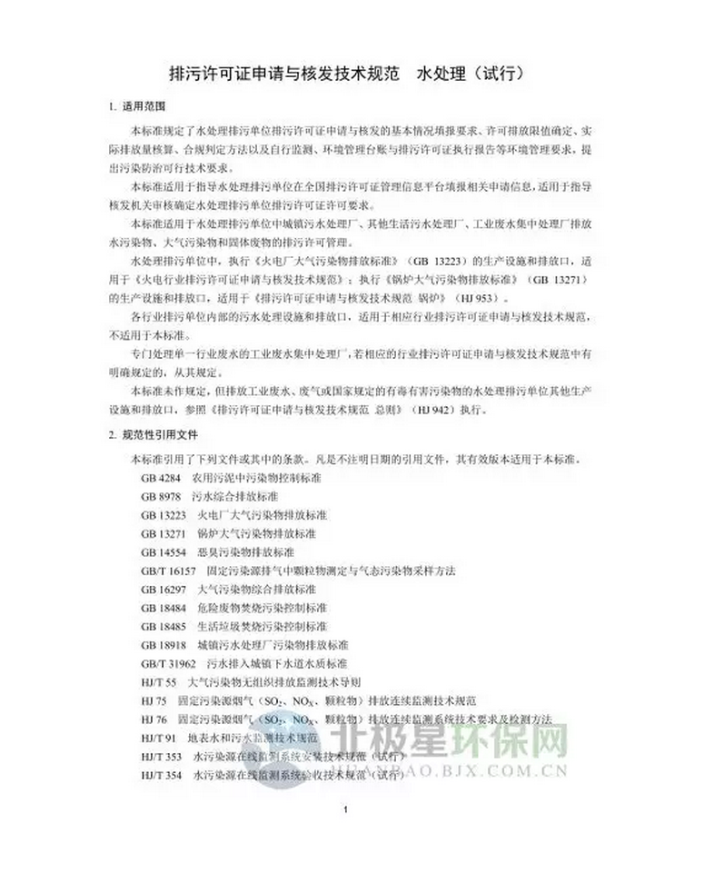關(guān)于發(fā)布《排污許可證申請(qǐng)與核發(fā)技術(shù)規(guī)范 水處理(試行)》國(guó)家環(huán)境保護(hù)標(biāo)準(zhǔn)的公告